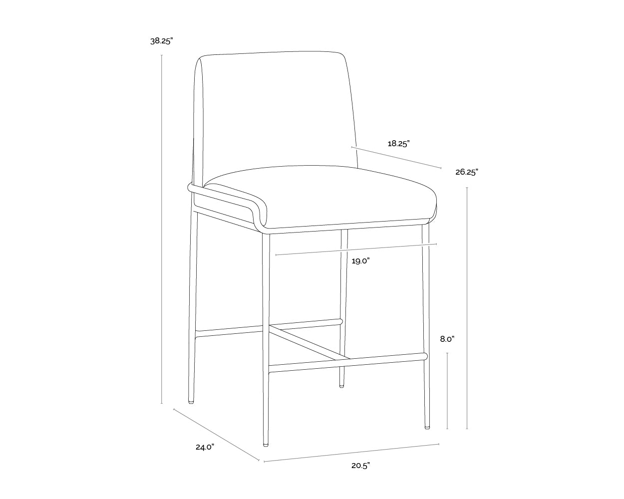 The Lathan Counter Stool is a celebration of minimalist design. Boasting a hand hammered antique brass iron frame and a comfortable seat upholstered in geralt linen. A luxurious addition to any space.