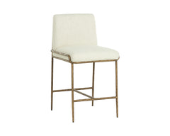 The Lathan Counter Stool is a celebration of minimalist design. Boasting a hand hammered antique brass iron frame and a comfortable seat upholstered in geralt linen. A luxurious addition to any space.