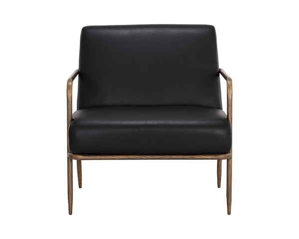 The Lathan Lounge Chair is a celebration of minimalist design. Boasting a hand hammered antique brass iron frame and a comfortable seat upholstered in charcoal or tan leather. A luxurious addition to any space.