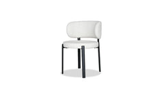 The Lily Dining Chair is upholstered in alabaster hopsack weave fabric. This stylish chair showcases a sleek leg design in a black powder-coated steel frame. Also available as a counter stool.