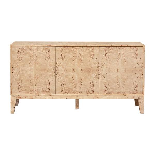 This sideboard is beautifully crafted and elegant, designed to enhance the style and functionality of any living space. It is renowned for its exquisite use of mappa burl veneers, which impart a unique and mesmerizing visual appeal to the sideboard.