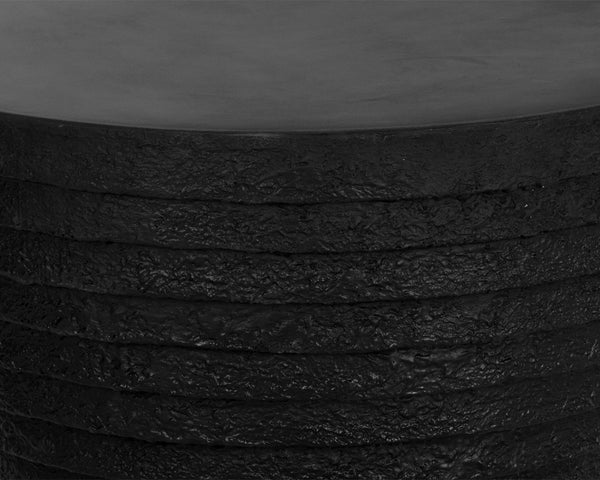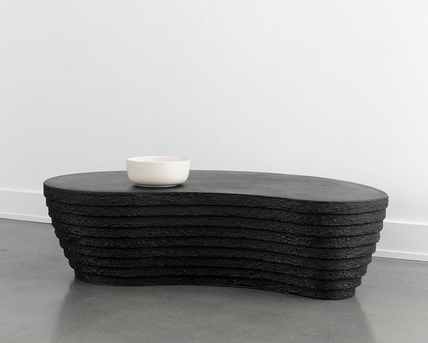 The Mojave Coffee Table brings a stylish edge to any space. A large, smooth tabletop gives way to richly textured ridging on the base. Crafted from glass fibre reinforced sealed concrete, each piece looks different, with variations of black hues that will enhance over time. Suitable for indoor and covered outdoor spaces.