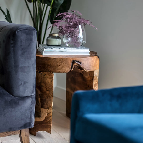 We’ve taken the root of upcycled teak trees and turned them into our rustic and stately live edge Bundar Accent Tables. Solid, sturdy and enduring, they’re perfect in pairs, and feel most at home when showcased in a room.