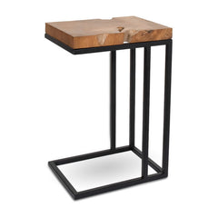 Made from upcycled and responsibly-sourced Indonesian Teak. The minimalist modern design features a live-edge top and industrial metal base. The perfect multi tasker, it can be used as a tray table or nestled under the side of a sofa creating a handy perch for snacks, books and so much more.
