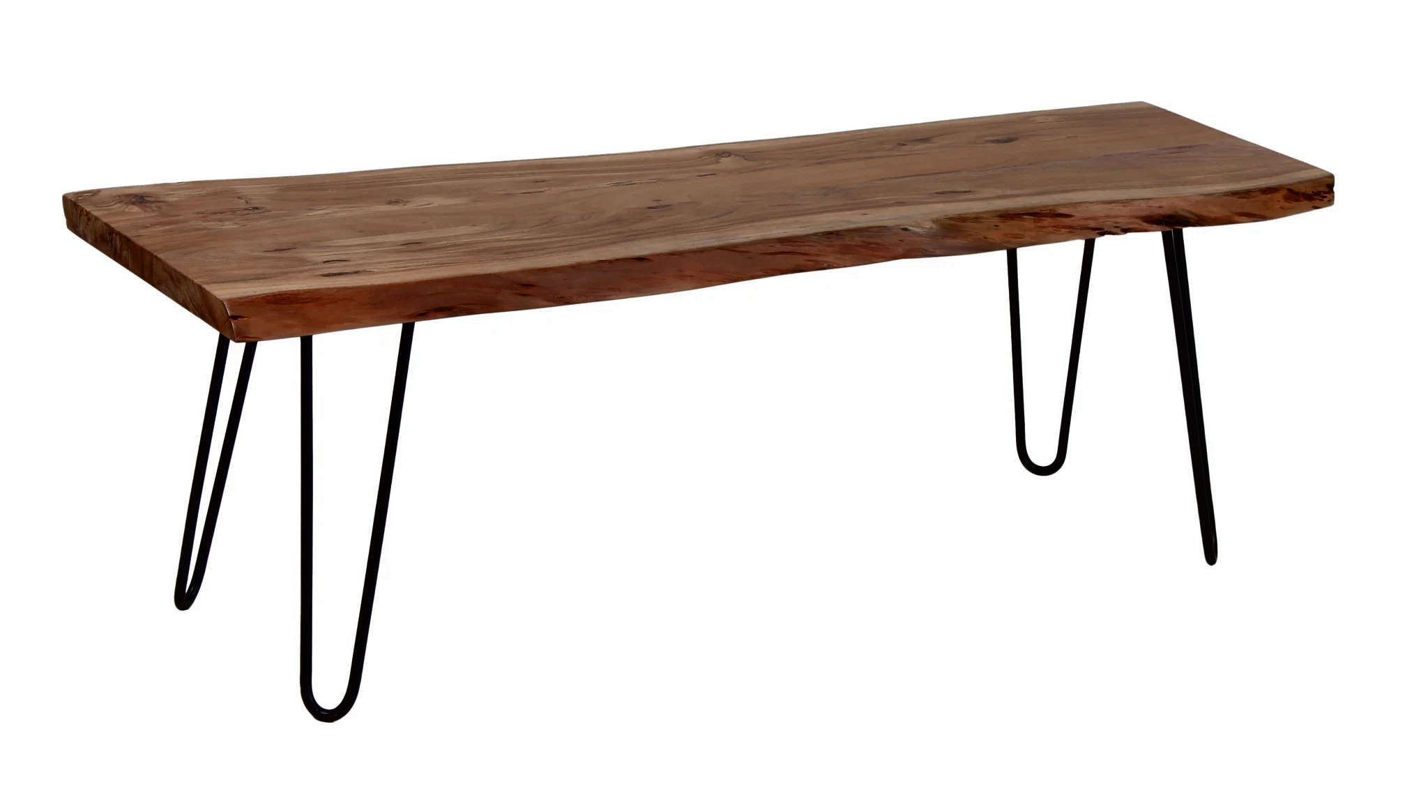 An Industrial Classic, the Nashik Collection is crafted with a solid Acacia Live edge table top and sturdy hair pin iron legs and a 4cm top. The collection boasts a full range of items in two finishes for the dining and living room.