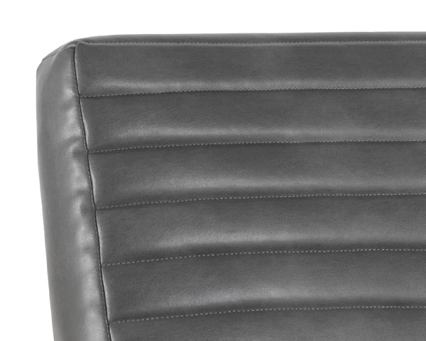 This mid-century inspired lounge chair features modern design with a hint of retro flair. Features horizontal channel tufting on the seat and seatback. Stocked in bravo cognac and cantina magnetite faux leather with a rich solid oak frame.