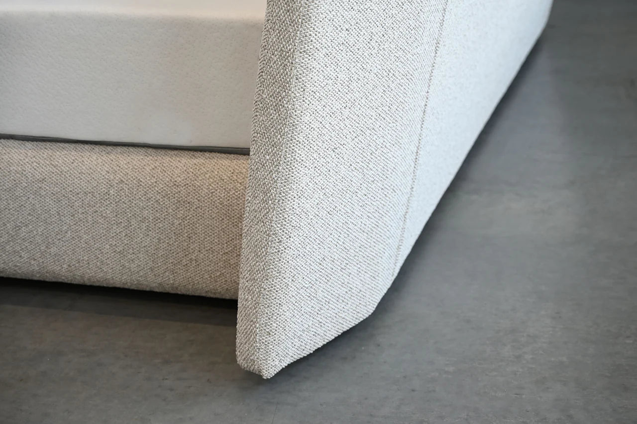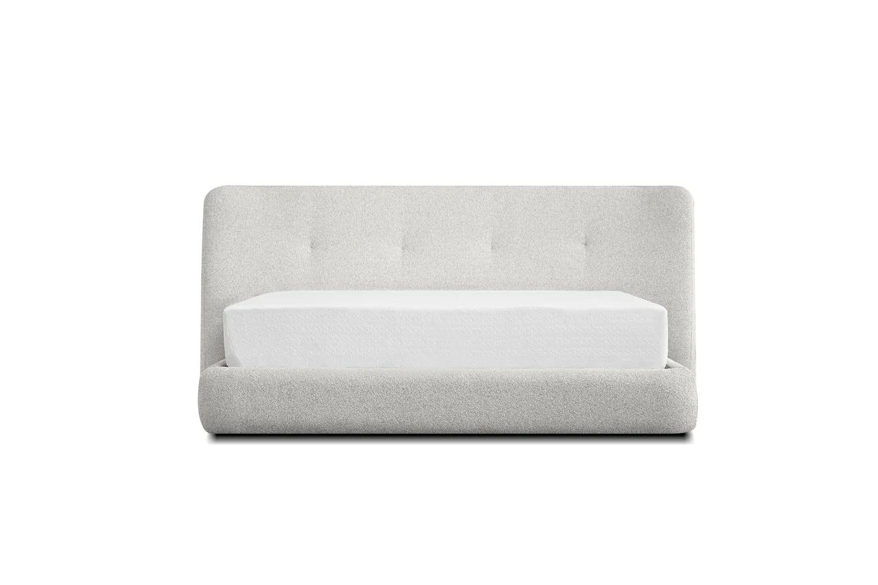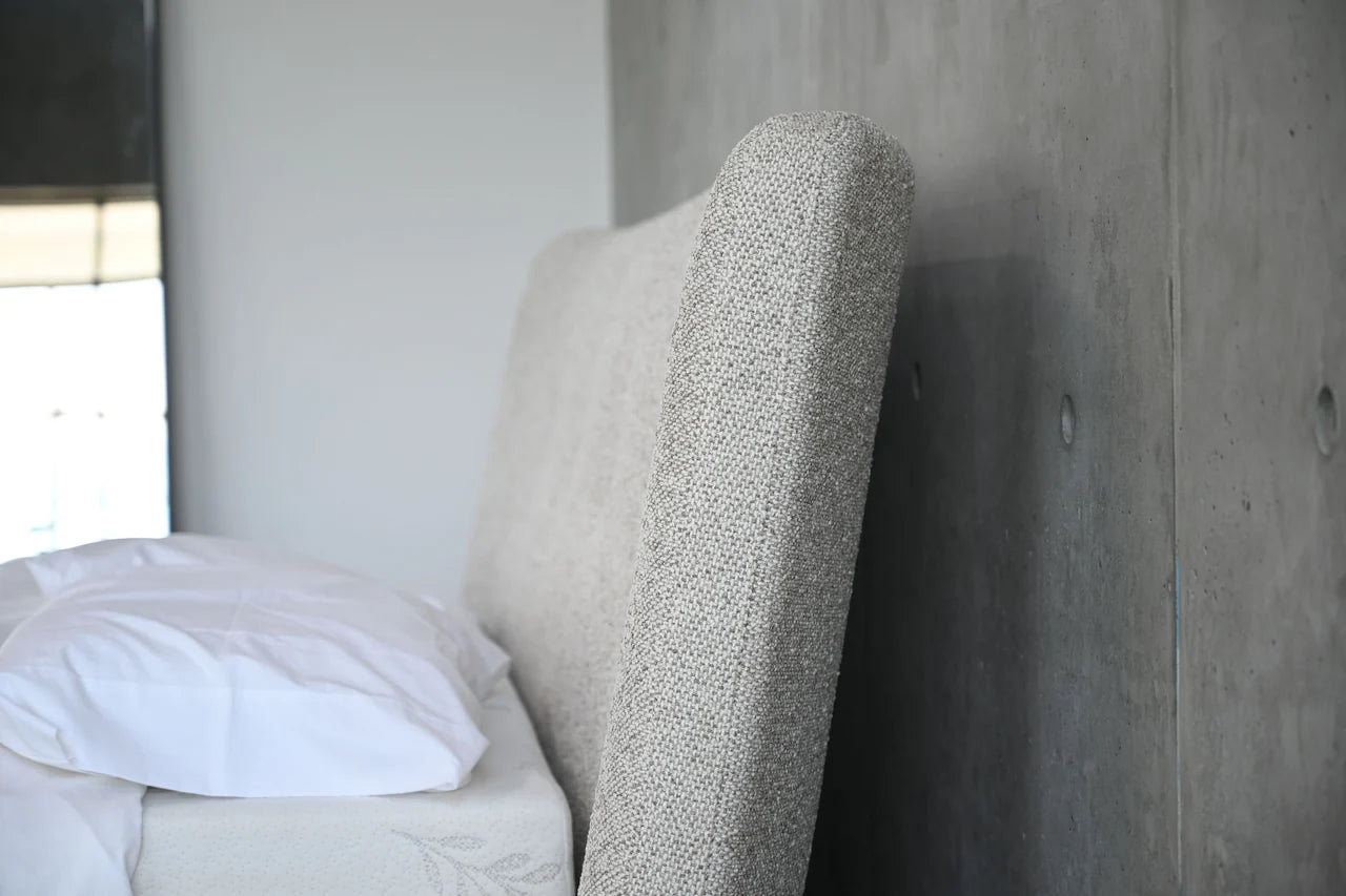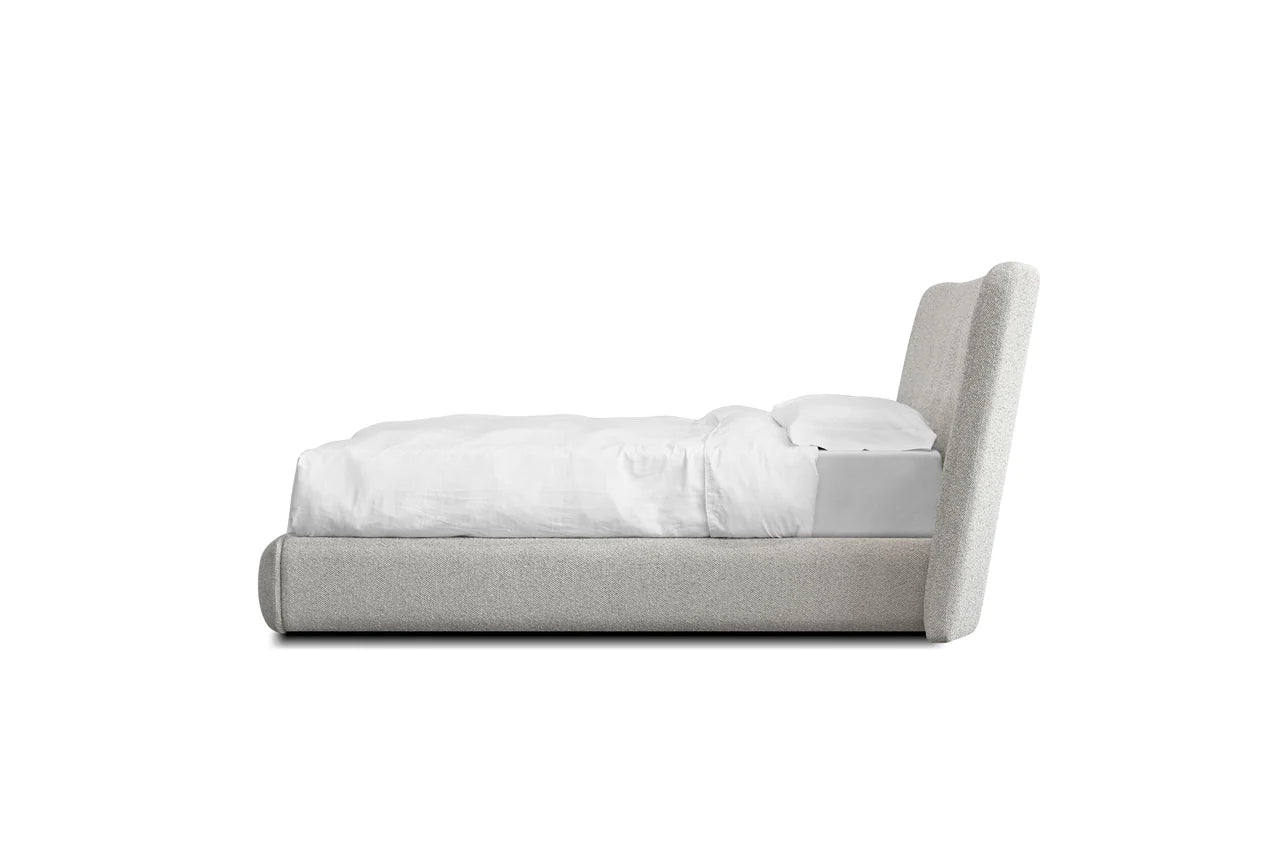 The Sensu Bed in gellar marble is designed with a luxurious nubbly fabric that provides both aesthetic appeal and comfort. Its unique color—gellar marble—adds a sophisticated touch to bedroom decor, making it a standout piece for contemporary interiors. This bed features a high-angled headboard, creating a rich and luxurious feel.