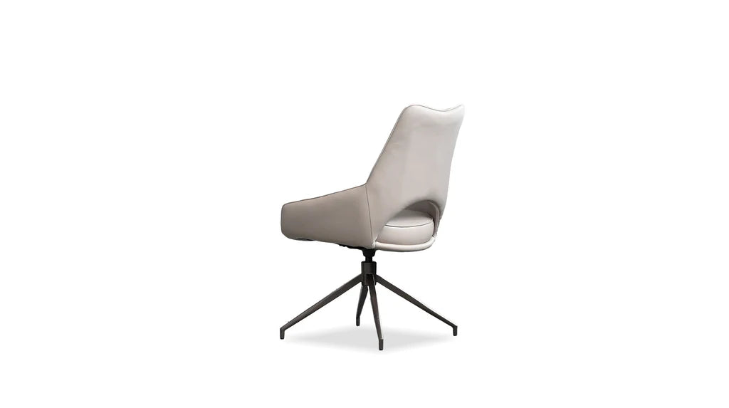 The Sofia dining chair is upholstered in two buttery-soft leatherette options: a buff beige with antique bronze legs or onyx black with black legs. This stylish chair features a 360 degree swivel and an ultra-padded seat, allowing you to sit comfortably for hours.
