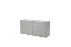 The Vex Collection is a study in modern minimalism. It boasts both a matte lacquer finish and an oak veneer with mitered corner detailing. There is an absence of ornamental drawer hardware, and in its place is a unique, invisible side pull that's both functional and tactile. The surface is easily maintained and cleaned with soft-close drawer mechanisms and zero-VOC construction.